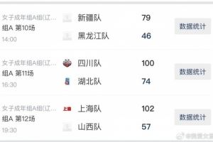 新疆队79-46黑龙江队,李玉琼15分7篮板,热苏拉、周昕芃各得13分,吴熠璠11分。黑龙江队田洋洋、孙萌各11分。