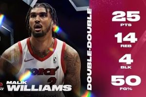 威廉姆斯在2023-24赛季为猛龙队出战了7场比赛。上赛季,他在发展联盟场均能得到14.8分9.1篮板1.3次盖帽1.2次抢断。